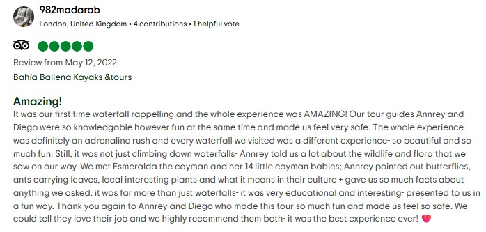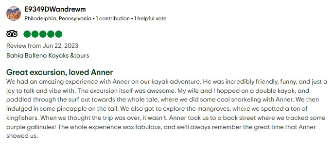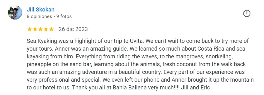La empresa Bahía Ballena Kayaks se especializa en tours de transporte acuático y de aventura.